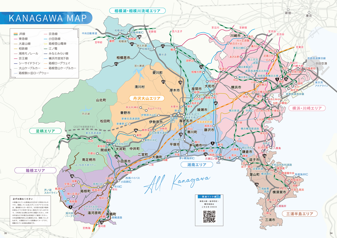 神奈川県の鉄道・道路(自動者専用道路、国道)のマップです。
